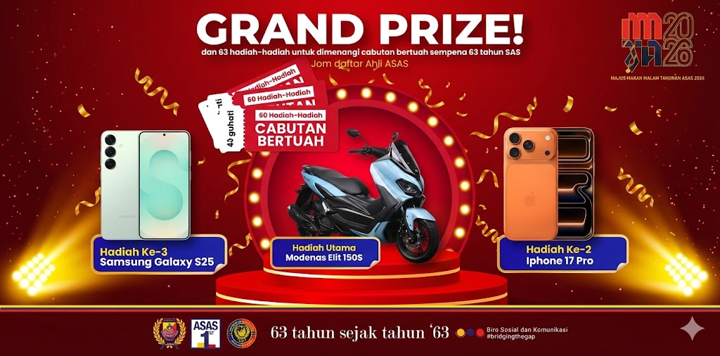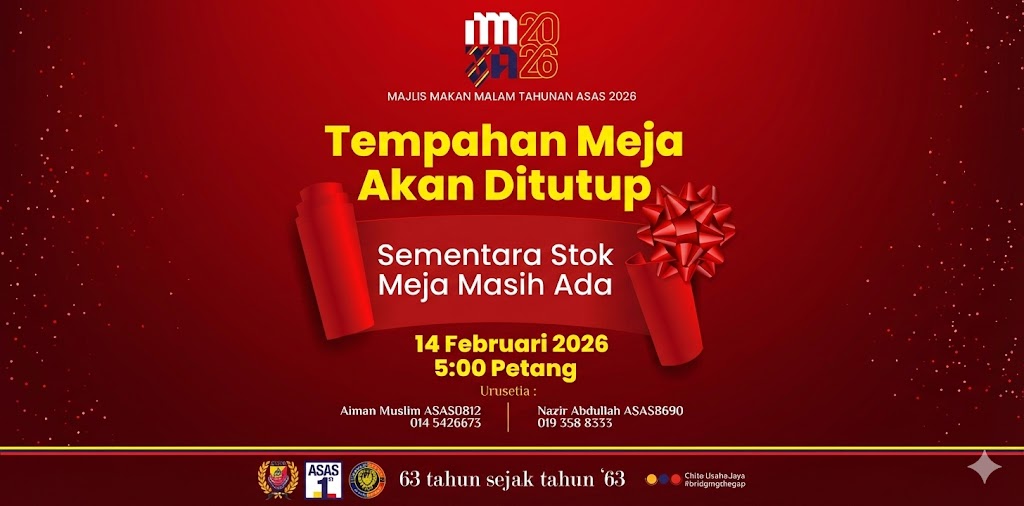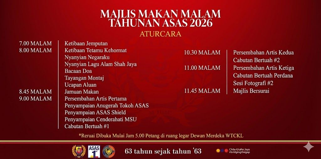 Assalamualaikum warga ASAS! Anda dah bersedia untuk malam ini? Lihat aturcara untuk MMMTA26 malam ini !! Jangan lupa daftar awal untuk buah tangan dan nombor cabutan bertuah anda. Jumpa anda semua di MMMTA2026 malam ini! mmmta.asas.com.my/daftar-cabutan-bertuah/ #cuj #asas1st #kitabudaksas #bridgingthegap #mmmta2026 🟨🟦🟥