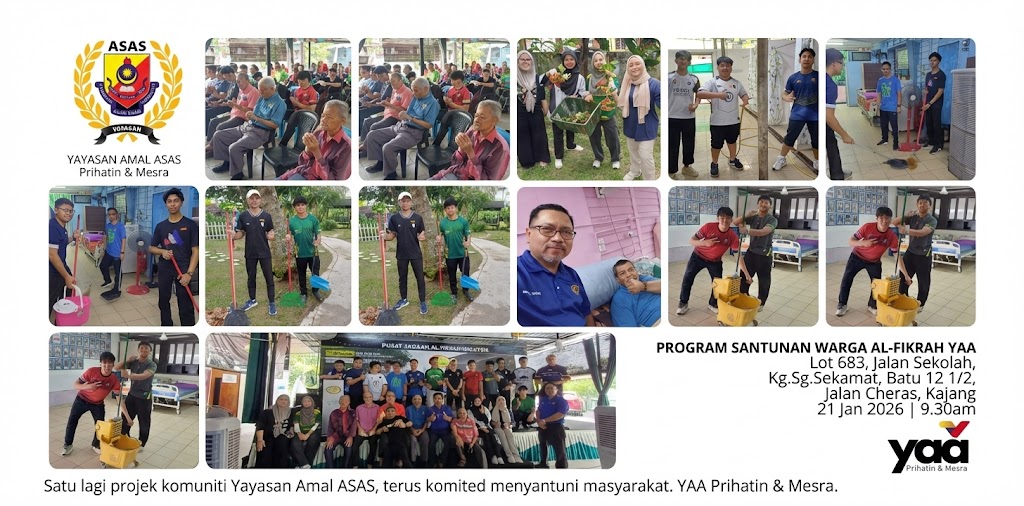 Assalamualaikum sahabat-sahabat ASAS yang dikasihi. Kami doakan anda semua dimudahkan segala urusan yang dilaksanakan. INFAQ JUMAAT SERENDAH RM10 YAYASAN AMAL ASAS (YAA) dibuka pada setiap Jumaat secara automatik dari jam 00.00 am sehingga 23.59 pm HARI JUMAAT. Marilah kita bersama menyumbang kepada inisiatif ini. INFAQ JUMAAT • 23/01/2026 Infaq Jumaat …