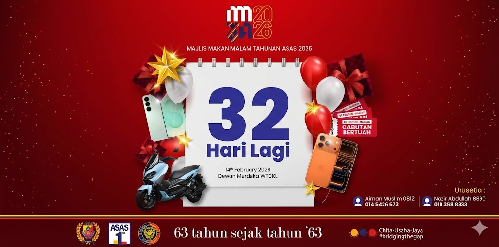 ⚜️MMMTA2026: 63 tahun sejak tahun ‘63⚜️ Assalamualaikum, Salam Alam Shah (SAS) MMMTA2026 bakal berlangsung tidak lama lagi. Hanya tinggal 31 hari ! Mari sama-sama kita hayati amanat Presiden ASAS… inshaaAllah jumpa anda semua di WTC nanti! Kita Budak aSAS ! Cepat dapatkan meja sekarang. Sila layari laman web rasmi ASAS …
