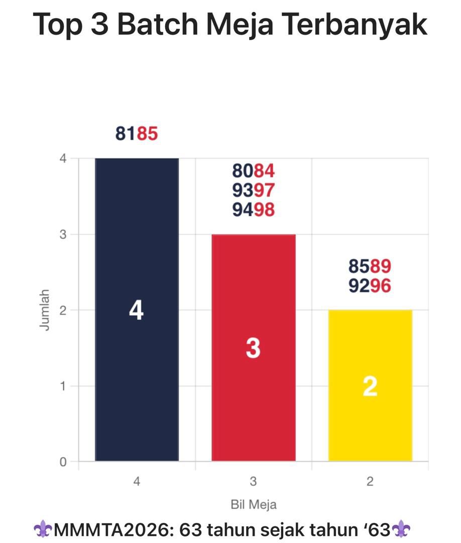 Carta di atas adalah kedudukan terkini pembeli meja terbanyak setakat 21-01-2026. Juara akan menjulang ASAS Charity Shield MMMTA2026.