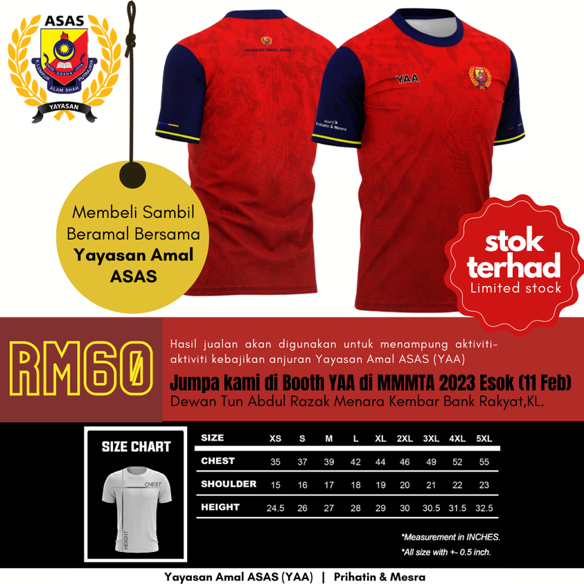 Jangan lupa untuk singgah ke Booth YAA bersempena Majlis Makan Malam Tahunan ASAS (MMMTA) 2023 di Dewan Tun Abdul Razak Menara Kembar Bank Rakyat,KL, esok Sabtu 11/02/2023. Selain T-Shirt YAA, terdapat beberapa lagi merchandise lain keluaran YAA akan dipamerkan seperti baju polo, topi, banner dsb.